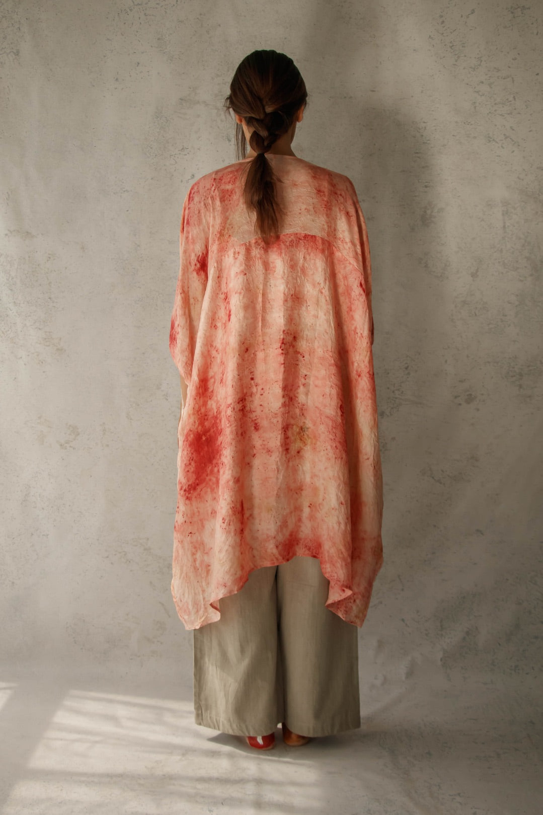 Made from Mulberry silk so fine and light that you’ll forget you’re wearing it. The garment is dyed using powdered roots of manjista. A print so full of passion that it enchants you from the very first glance.