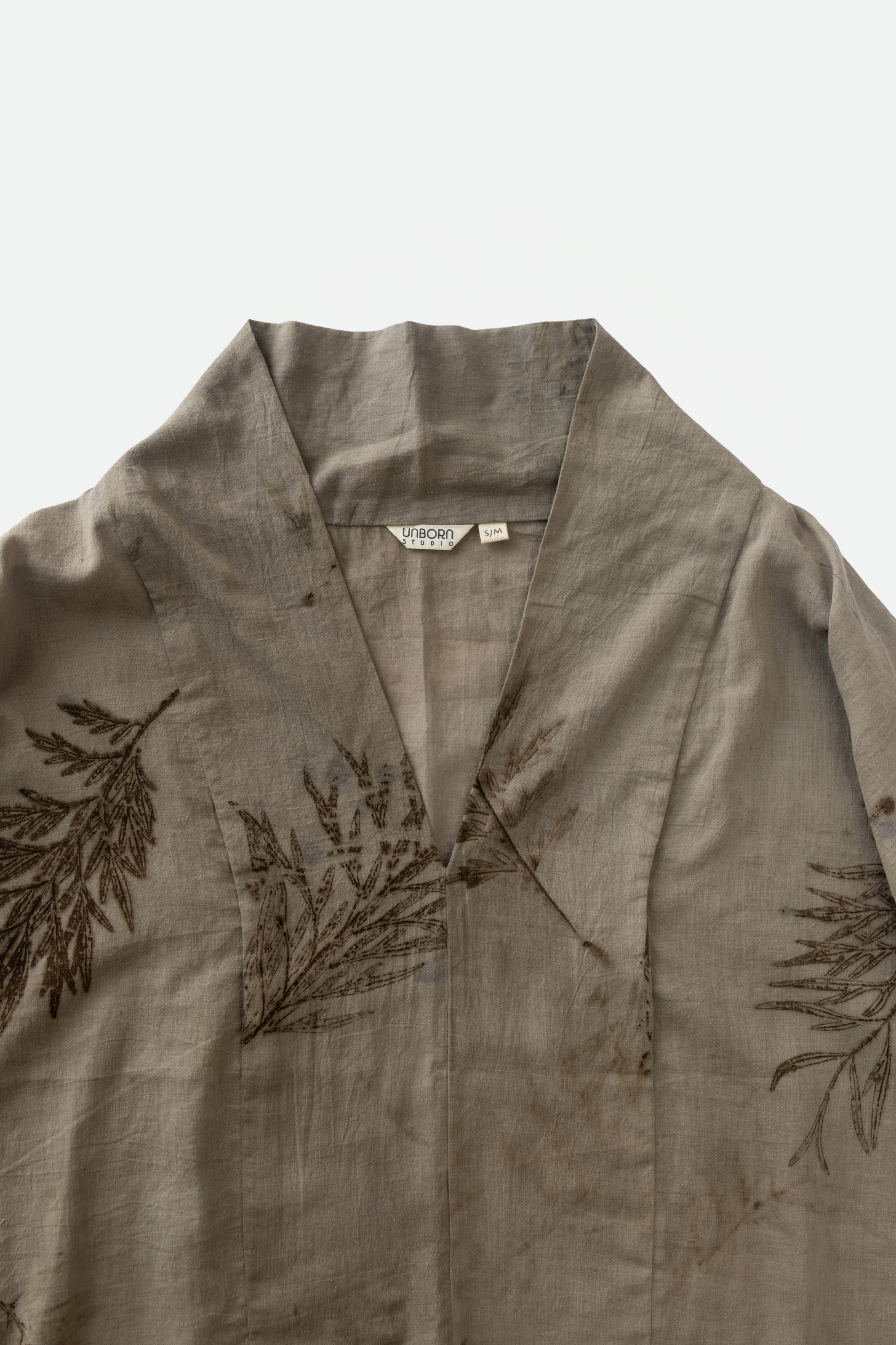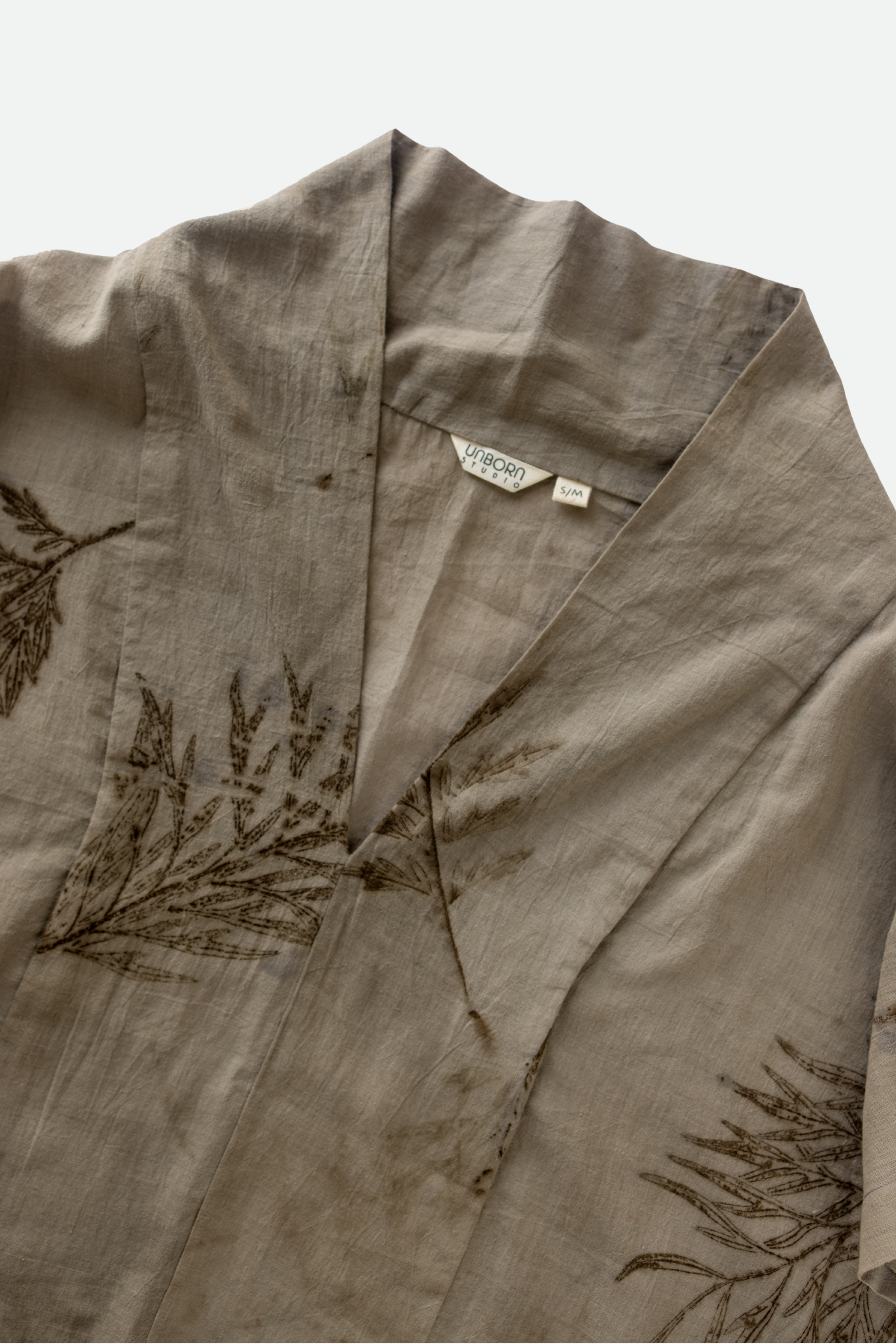 Made from remarkably soft khadi cotton. Extremely breathable and light-weighted cotton which is perfect for summers. The garment is dyed using guava leaves. The impression of every vein in the leaf will leave you in awe of the beauty in nature's complexity.