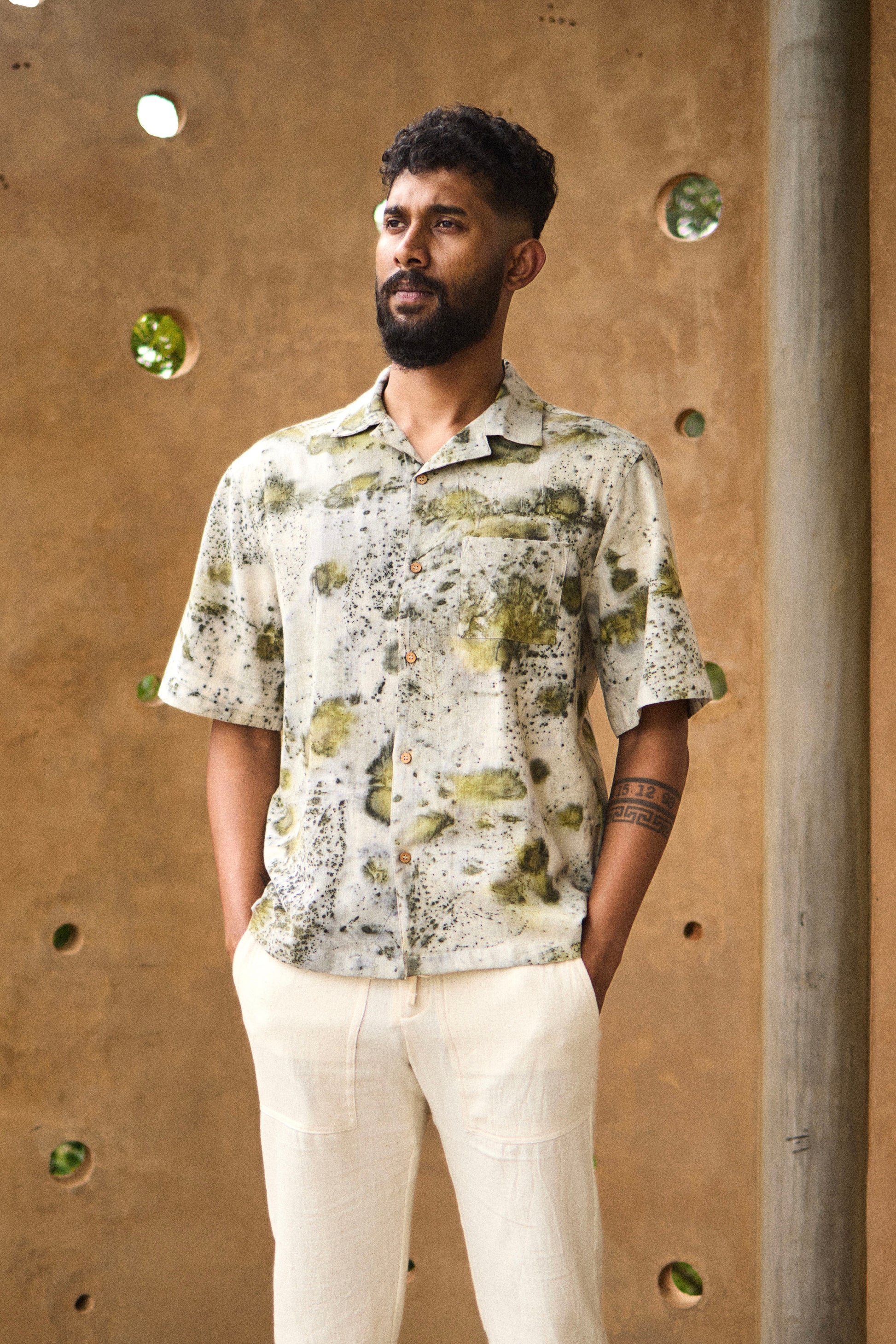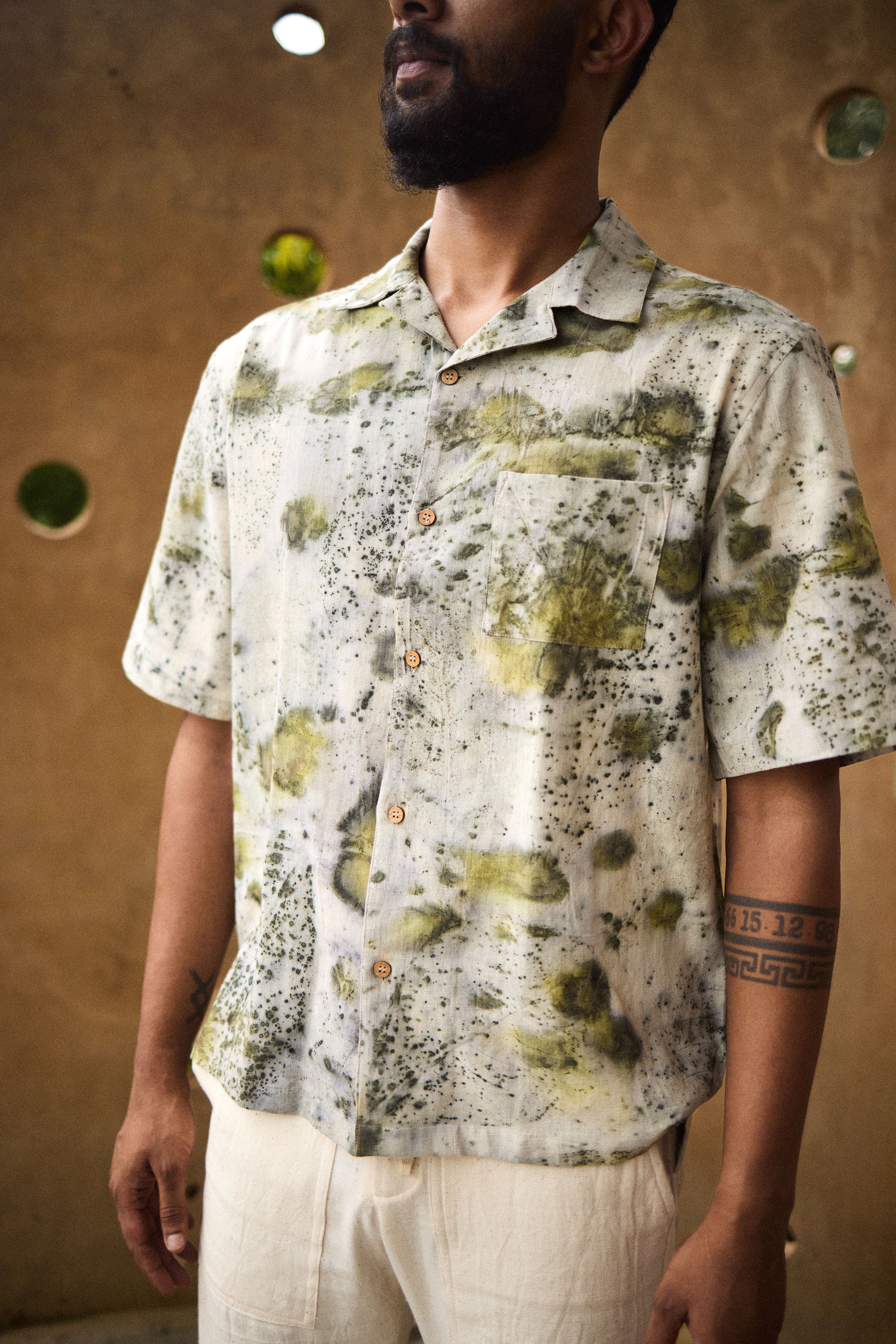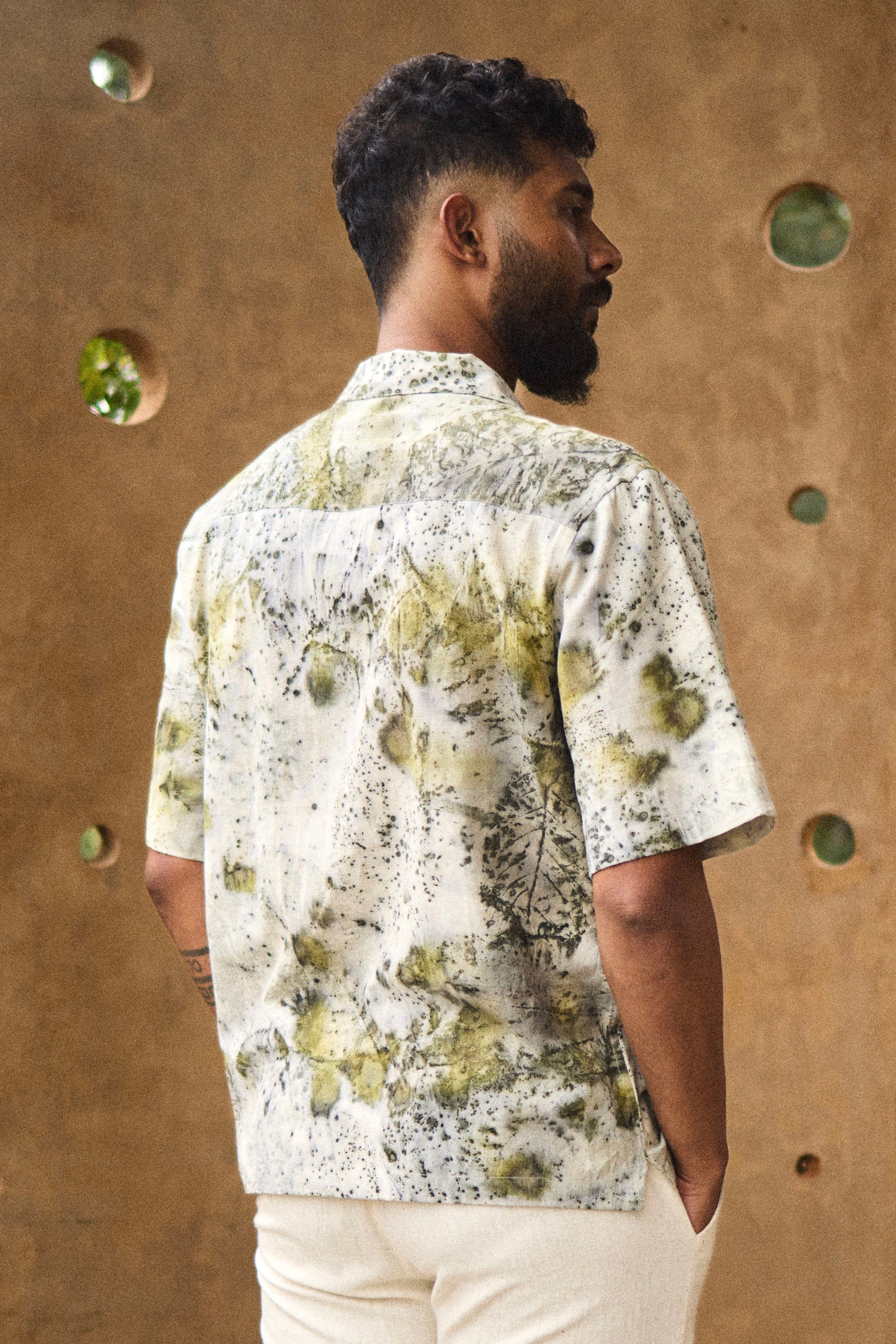 The garment is printed with Almond leaves, using one of the most water-efficient natural dyeing methods. The Gorgeous prints of leaves are truly unique and make you feel hugged by nature.