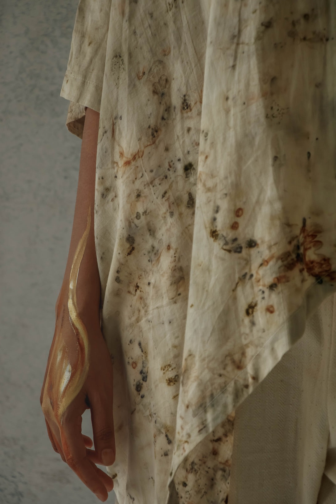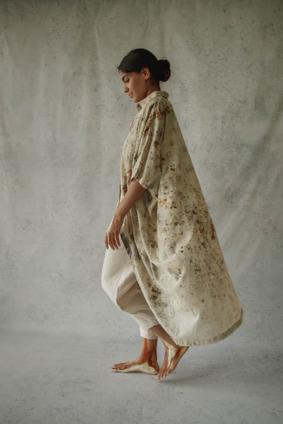 Made from remarkably soft, khadi cotton. Extremely breathable and light-weighted cotton which is perfect for summers. The print is a wonderful amalgam of 10 different dyes. It a true celebration of all the colours hidden in plants.